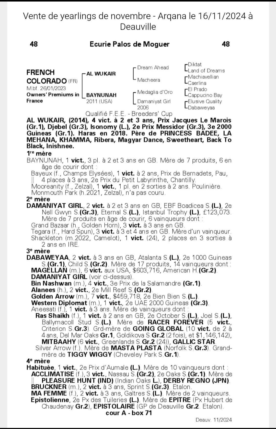 Baynunah est aussi la soeur de Cogitate qui avait gagné en débutant à 2 ans puis 5 ème dans un GR3 toujours a 2 ans.