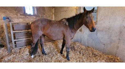Cheval Moise du breuil hongre 3ans,au debourrage, 1,60 va grandir avec le travail, porteur et costaud