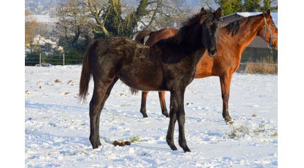 Yearling femelle, propre soeur de Mehdali, demi s?ur de Mehlango, noire sans blanc, avec taille et beau modèle.