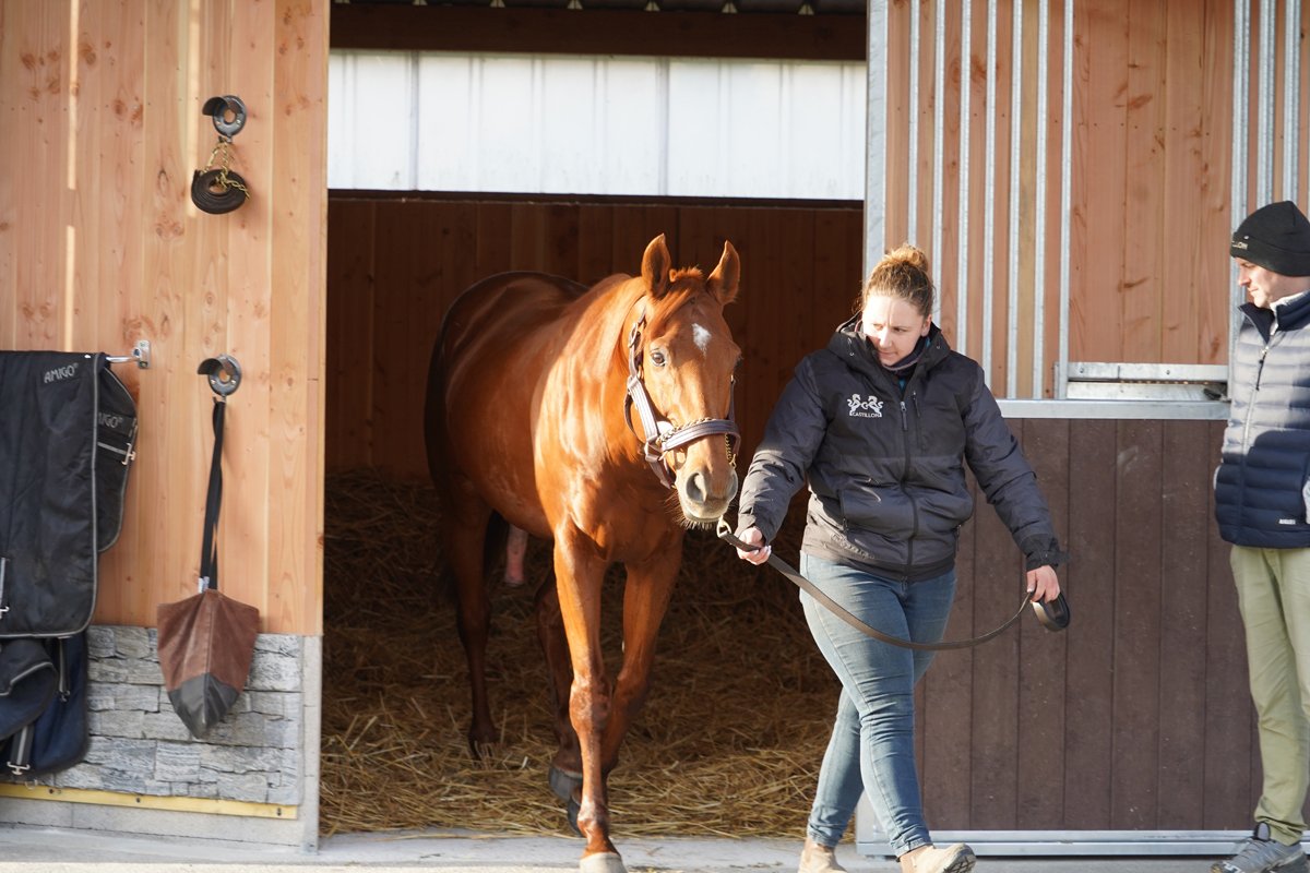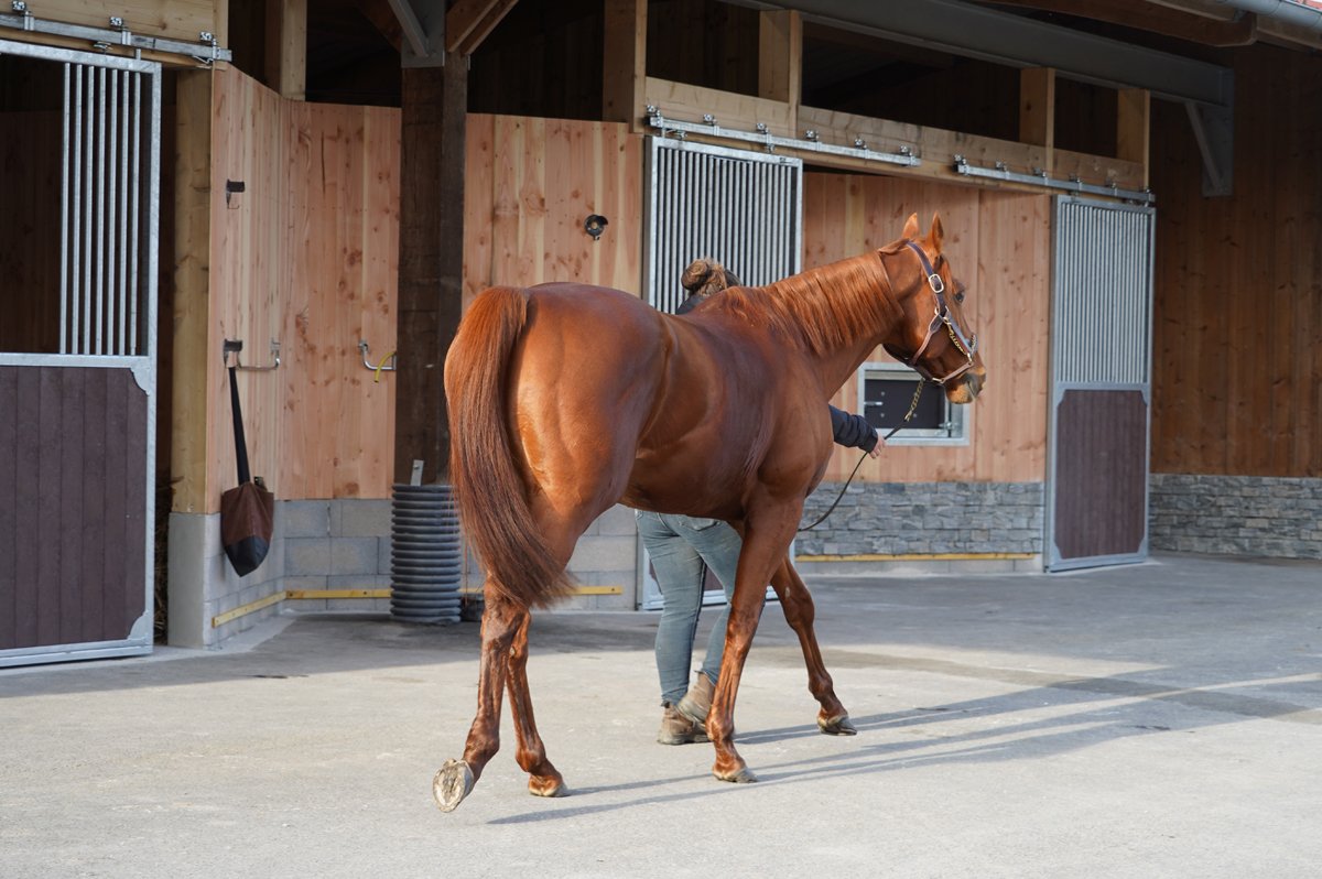 Tribalist devant la nouvelle cour d'étalons du Haras de Castillon.