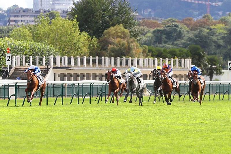 L'arrivée du Prix du Moulin de Longchamp (Gr.1) en 2024. Tribalist domine, de gauche à droite : Caramelito, Charyn, Ramadan, Henry Longfellow, Kelina et Notable Speech. (photo APRH)