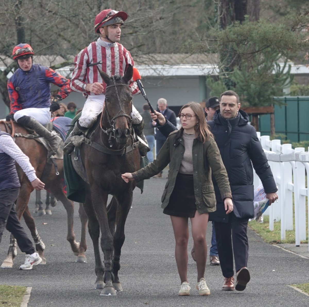 A gauche de l'image, Guillaume de Saint-Seine à coté de Francois Bayrou le maire de Pau et ancien premier ministre et à tout à droite, Jean-Louis Foursans Bourdette le président de l'hippodrome de Pau avec Fréderic Landon. Félicitations à tout l'entourage gagnant.