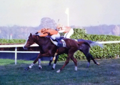 [caption id="attachment_497" align="aligncenter" width="400" caption="Mère de Paulin, Jalousie Sourniac était déjà une très bonne jument de course, gagnante à Pau."]
