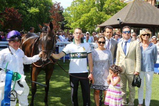 L'entourage de la lauréate Amazing Maria, dont au centre son éleveur Sir Robert Ogden & sur la droite son entraîneur M.David O'Meara