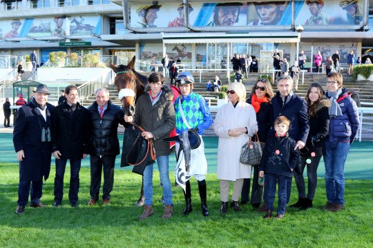 Guillaume Macaire a du apprécier la troisième victoire cette saison à Auteuil de sa protégée; ainsi que le monte de Bertrand Lestrade.