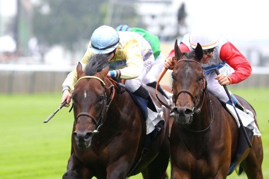 Un duel dans le prix Gros Chêne Gr.2 à gauche, Son Cesio conservera une courte tête sur Catcall (à droite)
