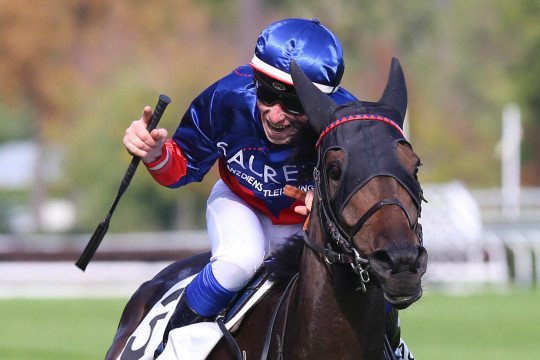 Il offre à son entraineur, Carina Fay ici avec son jeune bébé, sa 1ère victoire de Groupe tout comme pour son jockey Benjamin Gelhay !