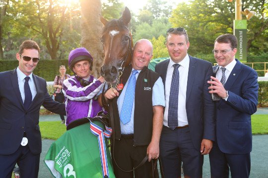 Un peu plus tôt dans la journée, c'est Kew Gardens ( Galileo) qui remporte le Grand Prix de Paris (Gr1) venant facilement à 300 mètres du but et lutte face au très beau Neufbosc, récent vainqueur du Prix du Lys Gr.3 pour lentraînement de Pia Brant