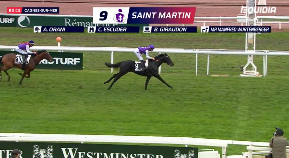 | 01 | SAINT MARTIN M3 Vente de yearlings d'octobre - Arqana 2024 : Vendu 75,000€ Père : TIME TEST Mère : ABRAXA | Pr. Giraudon Bernard El. Wurtenberger Manfred En. Escuder Christophe Jo. Orani Antonio |