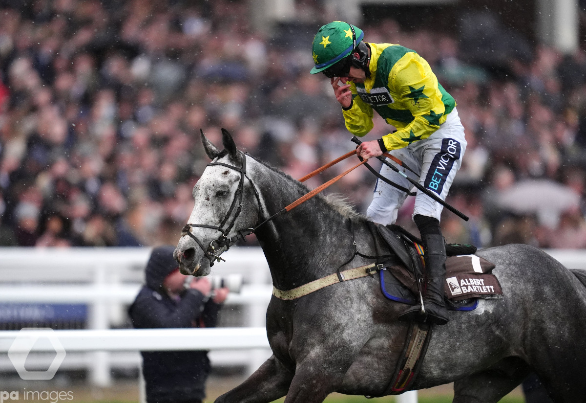Ce hongre de 6 ans, fils de Jukebox Jury, confirme ainsi sa capacité à tenir les longues distances après avoir montré progressivement des moyens dans les épreuves préparatoires. Sa mère Sainte Baronne, par Saint Des Saints, appartient également à une lignée particulièrement solide : le lauréat est demi-frère du champion Appreciate It, gagnant du Supreme Novices' Hurdle. Johnny’s Jury confirme sa lignée et s'offre ainsi le plus beau succès de sa carrière, tout en permettant à Jamie Snowden un succès de premier plan, au cœur du plus grand meeting d’obstacle au monde. Photo : PA RACING