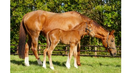 Comptant parmi les meilleurs fils de l'illustre Dark Angel (Acclamation), Angel Bleu a débuté sa carrière d'étalon en 2024, à SUMBE, où il est de nouveau proposé aux éleveurs en 2026, année de ses premiers yearlings, au prix de 6 000€ la saillie. Retrouvez les photos des premières naissances de la 2e génération des produits d'Angel Bleu !