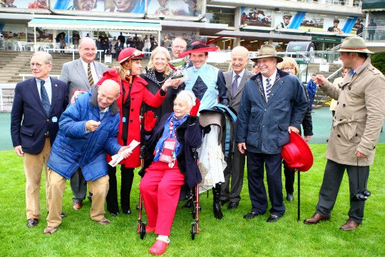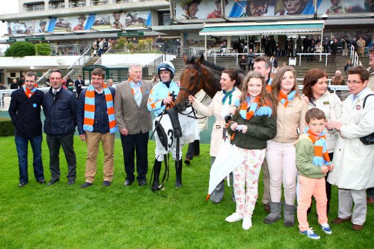 Propriétaire, éleveur, entraîneur, jockey et lad sont fiers de leur champion Cirrus des Aigles