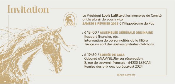 La veille du Grand Prix de la ville, le samedi 03 février, l'hippodrome de Pau a servi de cadre à l'Assemblée Générale de l'ECSSO (Syndicat des Éleveurs de Chevaux de Sang du...