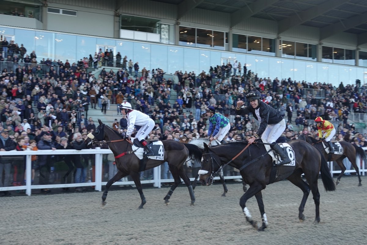 Proposé à 66/1, Exupéry a créé une énorme surprise en triomphant dans la 139e édition du Grand Prix de Pau - Biraben Foie Gras - Prix André Labarrère (Gr.3). Il offre une 1ère victoire de Groupe à son jockey Quentin Défontaine, ainsi qu’à son entraîneur Fabien Lagarde et à son éleveur Georges Lacombe, qui sont tous les 2 associés sur le cheval de 11 ans ! Par Alice Baudrelle.