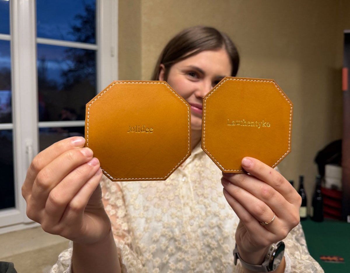 Les trophées étaient personnalisés que ce soit les coussins ou les sous-verres en cuir fabrriqués par la Sellerie Maroquinerie de Sophie David