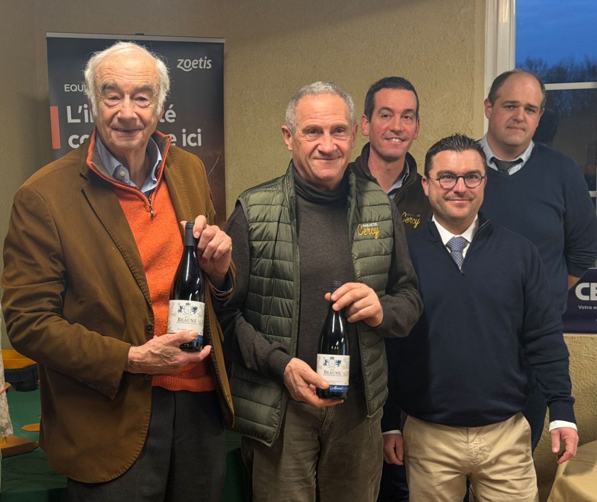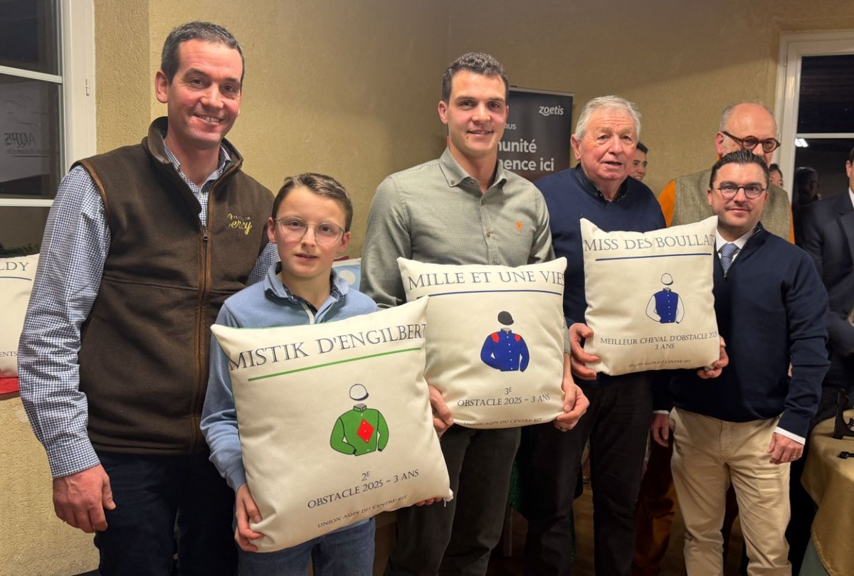 Charles Magnien, Clotilde de Barmon, membre de SCAECC du Haras de Cercy, Frederic Landon, vice-président de France Galop, Thibaut Juhen, Nelly de la Guillonière et Nicolas Cyprès
