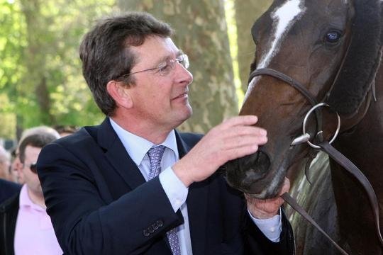 Jean-Claude Rouget en compagnie de sa gagnante du Prix de Diane : Valyra