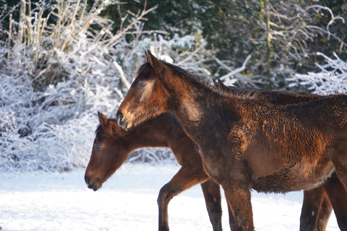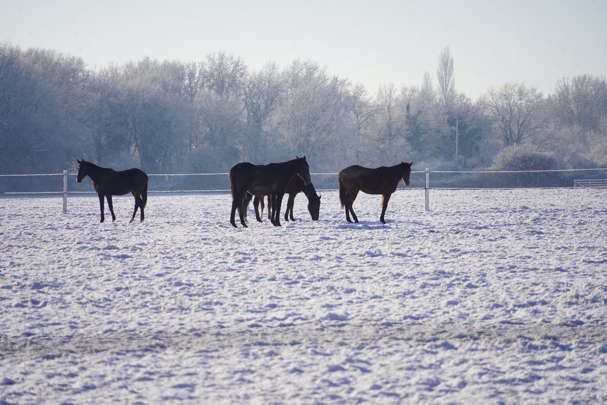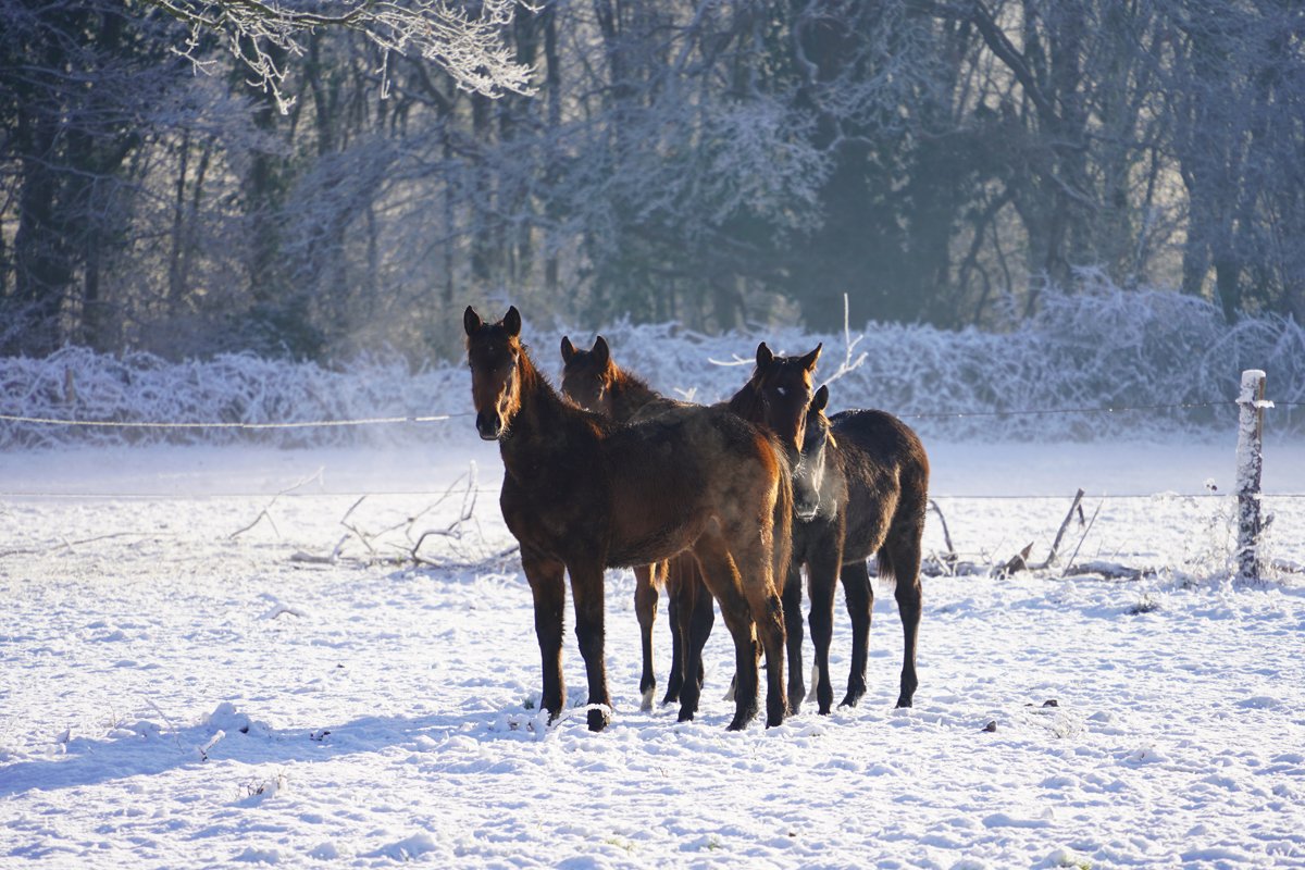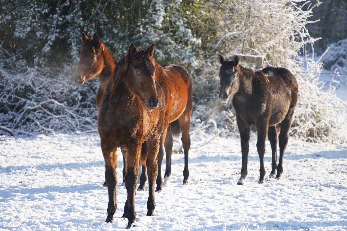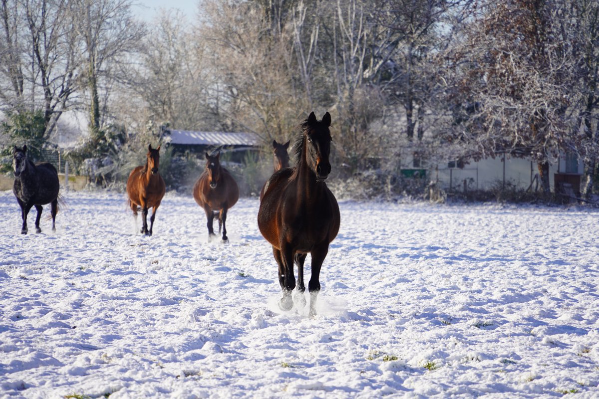 Rarissime ! Quand l'Anjou devient tout blanc et que les poulains s'amusent à l'Ecurie des Mottes