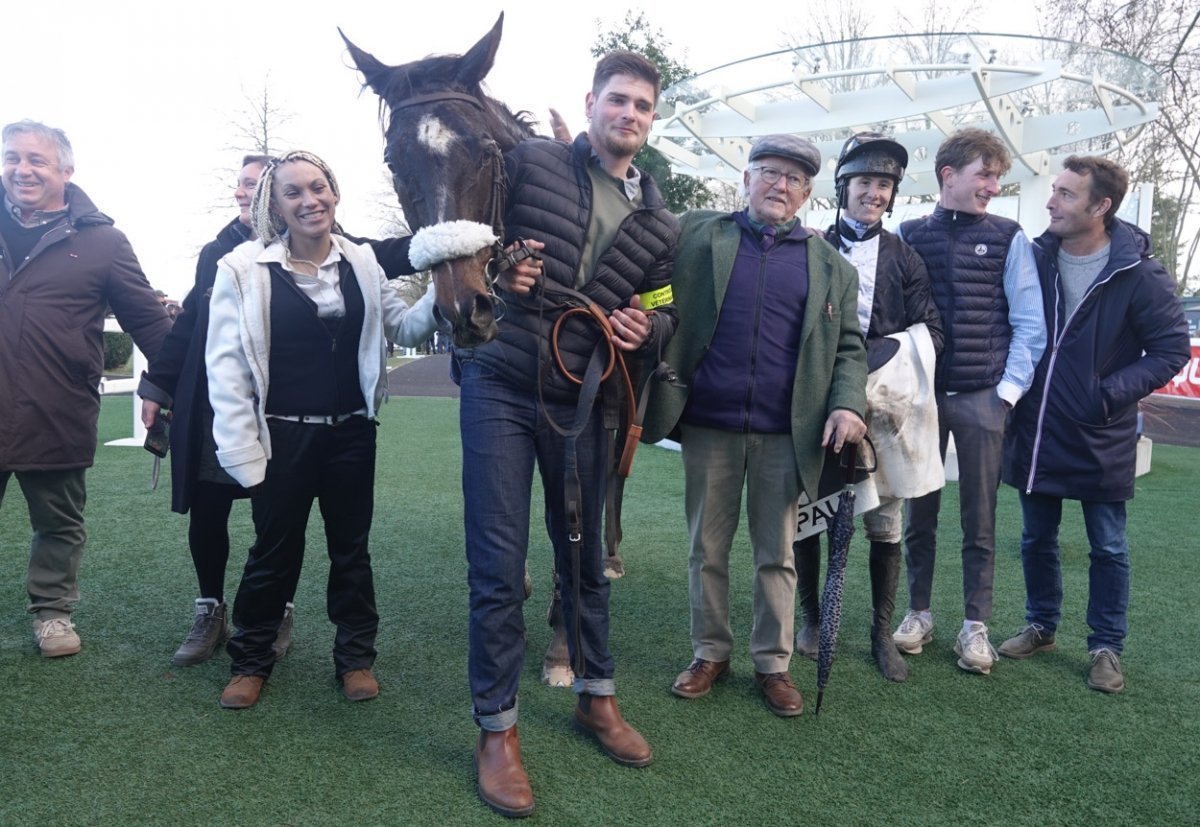Proposé à 66/1 dans le Grand Prix de Pau, Exupéry a remporté la plus belle victoire de sa carrière à l’âge de 11 ans pour la casaque et l’élevage de Georges Lacombe, qui a triomphé pour la 1ère fois à ce niveau. Ce dernier signe son 1er succès en association avec Fabien Lagarde qui entraîne le cheval depuis quelques mois, et nous a expliqué : « Je cherchais un nouvel entraîneur pour Exupéry, et je crois avoir trouvé le bon avec Fabien Lagarde. Mon neveu, Thomas Figueira, monte de temps en temps en course pour lui et m’en disait beaucoup de bien, donc je lui ai confié le cheval. Il a réalisé du très bon travail avec Exupéry qui a toujours montré de la qualité, mais qui n’a pas eu beaucoup de chance. Je voulais courir le Grand Steeple-Chase de Paris avec lui, mais soit il n’était pas bien à ce moment-là, soit il n’avait pas le terrain lourd qu’il affectionne … Dimanche, tout était réuni pour qu’il fournisse une grande performance. J’aurais été content qu’il termine 4e, mais il avait tout pour lui et il a gagné ! ».