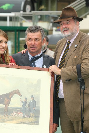 Milord Thomas signe une victoire dans le Px Ingré Gr.2, bien entouré, avec son jockey Jacques Ricou et son entraîneur M.Dominique Bressou