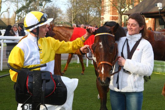 Mickaël Barzalona s'offrait son 1er succès sur les 2 de sa journée. Ci-dessus Virgine fille de Silver Frost pour l'entaînement de M.Tony Clout