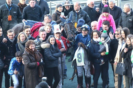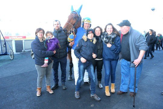 Nathalie Henry et ses enfants heureux après la victoire de Matthieu Abrivard