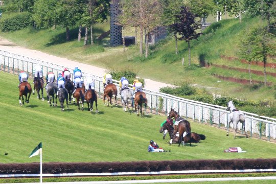 Le Prix Maréchal Foch navait attiré que 5 partants et pour cause puisque Device, grand favori de lépreuve, avait fait le vide. Le fils de Poliglote sest littéralement envolé dans les 200 derniers mètres avec en selle Barbara Guenet.