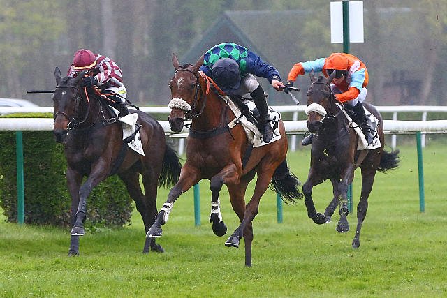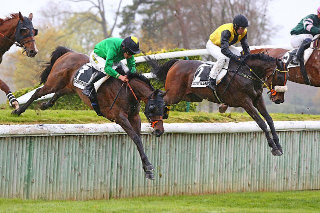 Lundi à Compiègne : Côte Fleurie (casaque verte) s'est montrée à l'aise sur la terre pour s'adjuger le cross du jour