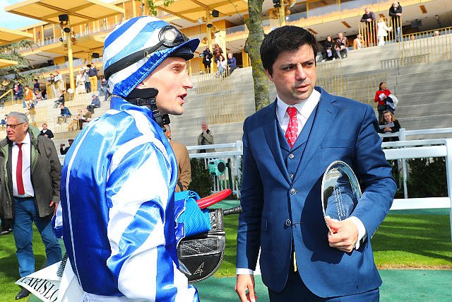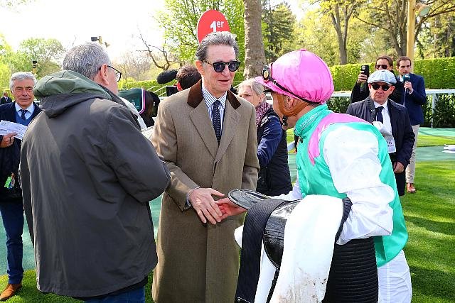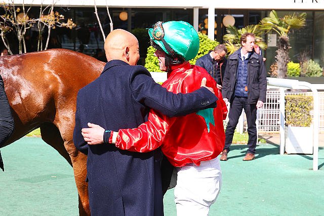 Dimanche à Longchamp : le nouveau jockey numéro 1 de l'écurie Fabre félicité par Edouard de Rotschild