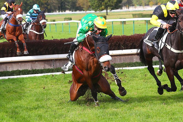 Lundi à Compiègne : son jockey Gaétan Masure parvient à rester en selle et concluera finalement 4e