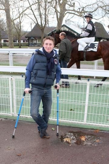 Théo Bachelot, plâtré mais souriant. Bon rétablissement, rendez-vous en 2012!