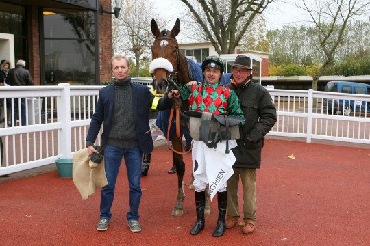 Tout sourire pour ce succès de Gr.3 avec Storm of Saintly & Vincent Cheminaud pour M.Macaire