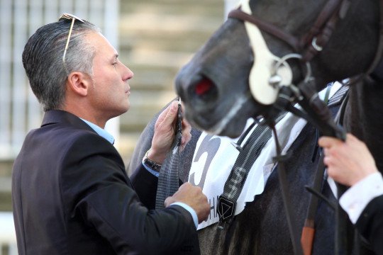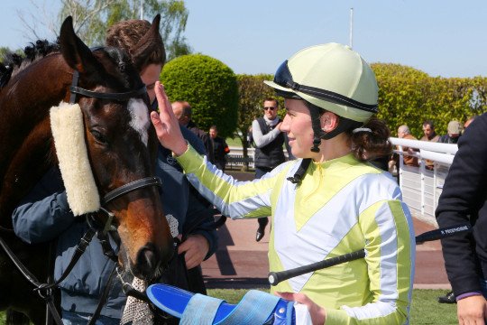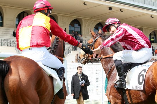 La joie de Fabrice Véron sur Goldy Espony victorieux dans le Prix Pénélope Gr.3 pour Henri-Alex Pantall et Yvette Chabot