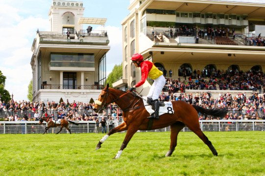 Le jockey ne fait plus qu'un avec sa monture (Flavien Prat)