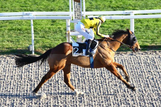 A 3 ans Aratika, fille d'Air Chief Marshal ouvre son palamrès sous la selle d'Alexis Badel - Entraînement M.William Walton