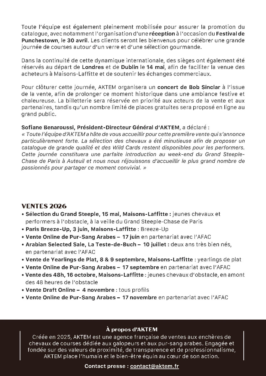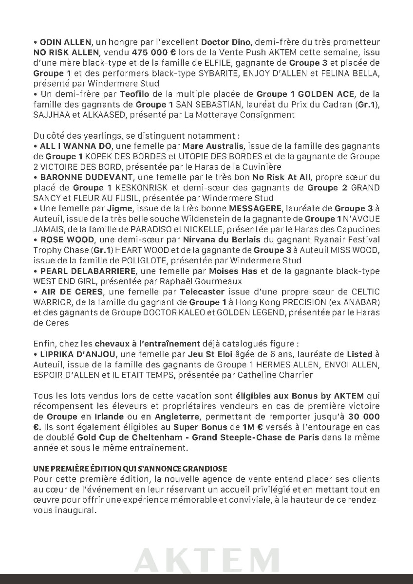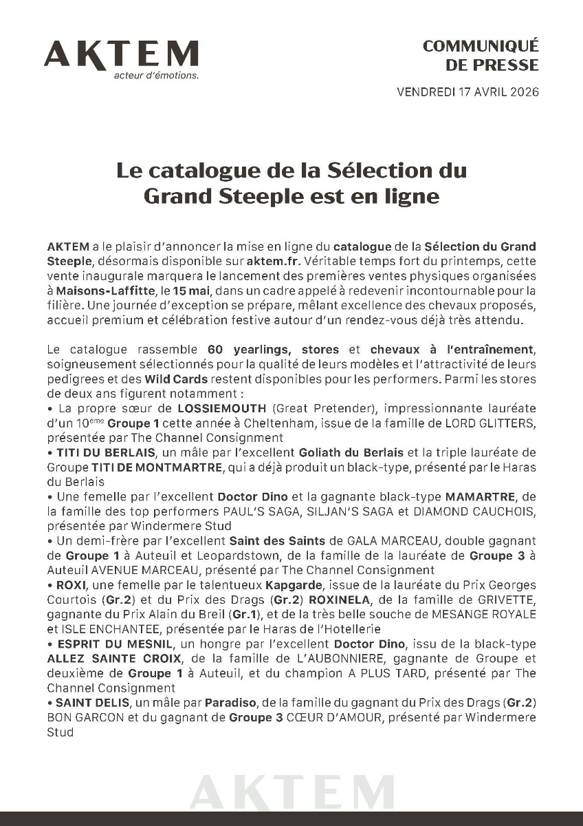 Aktem : catalogue de la vente du Grand Steeple