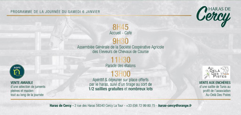 A France Sire comme sans doute dans toutes les entreprises et les familles bien tenues, le règle est simple : tout comme les mails en copie, les bonnes résolutions sont interdites ! Et cela s'applique dès le 1e janvier. Donc en l'occurrence dès le 1e événement de l'année, et l'un des plus importants : la journée Portes Ouvertes du 6 janvier au Haras de Cercy.