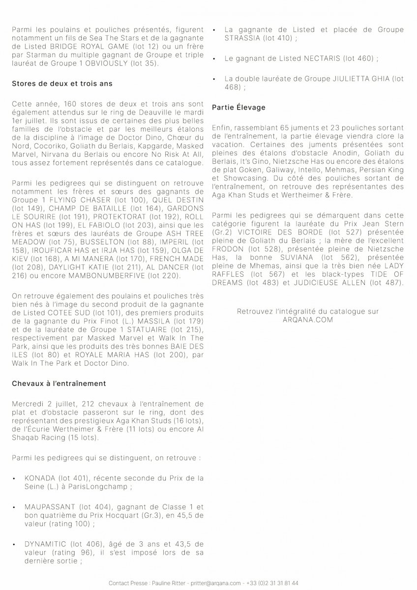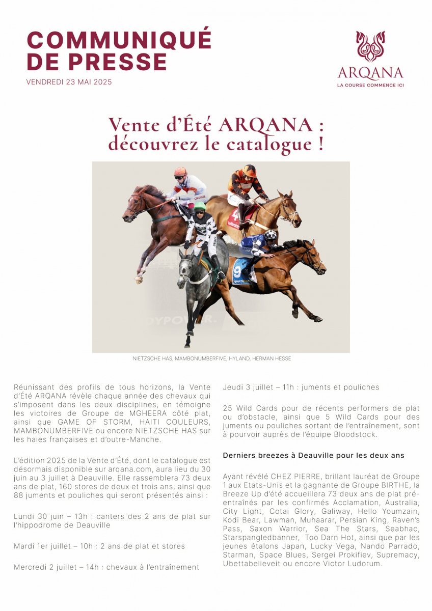 Arqana : le catalogue de la vente d'été est en ligne