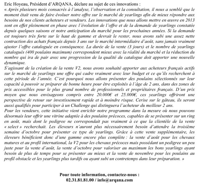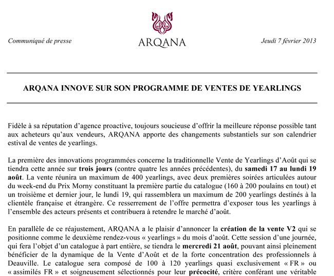 Du nouveau dans la vente d'août d'Arqana