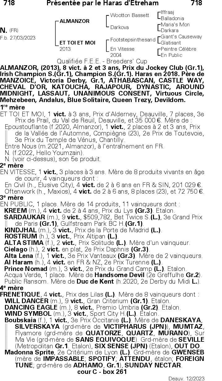 Retrouvez la liste des participations aux ventes et shows de ce cheval et de sa famille proche.