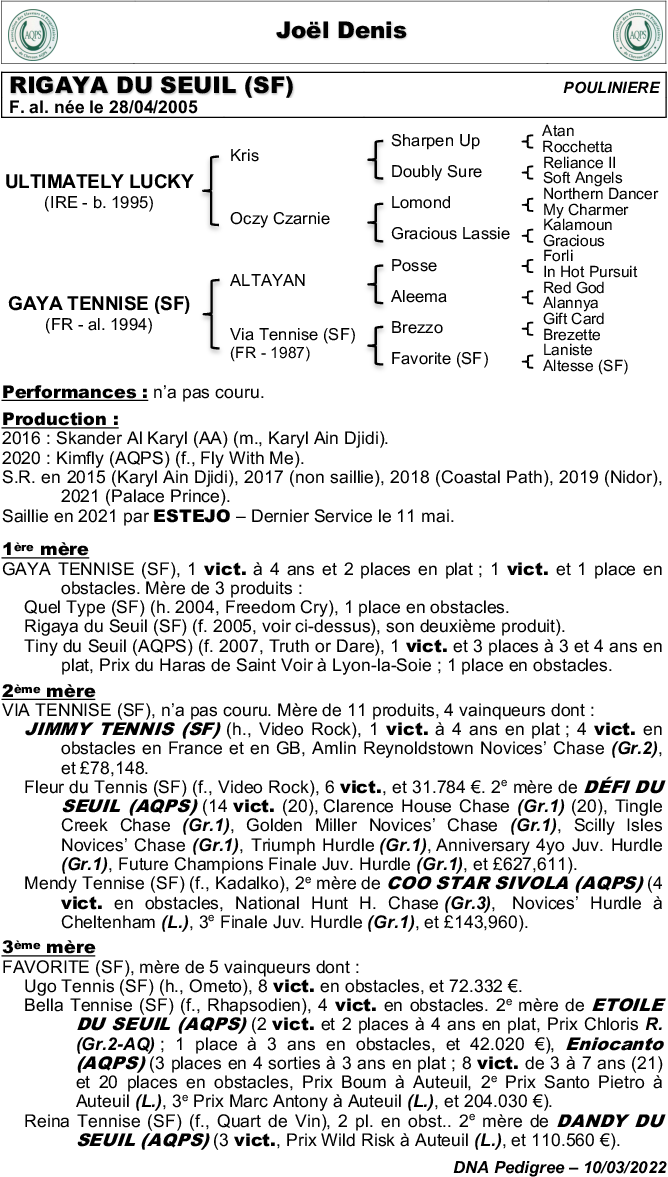 Retrouvez la liste des participations aux ventes et shows de ce cheval et de sa famille proche.