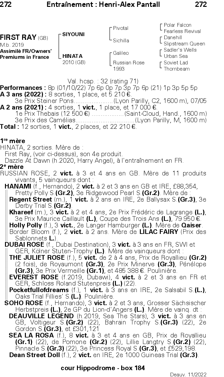 Retrouvez la liste des participations aux ventes et shows de ce cheval et de sa famille proche.