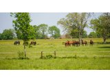 En chiffres, le Domaine de l’Etang s’étend 200 hectares réservés où cohabitent les chevaux, les bovins et les cultures de blés, paille, avoine, orge, maïs, etc... D'ailleurs, le haras est entièrement autonome en terme de fourrage mais aussi d'alimentation.
