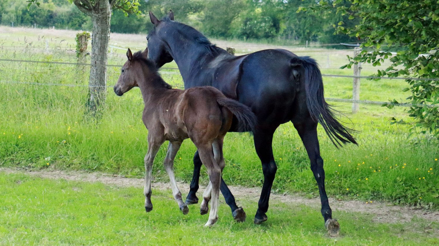 Cette année, 2 foals ont vu le jour dans les prairies de l’Elevage de Sarti, basé sur la commune de Sartilly, à quelques pas de l’Ecurie Chemin & Herpin, où sont, généralement, exploités les produits de l’élevage, ainsi que du centre d’entraînement Galop Baie de Dragey-Ronthon. Sortie de l’entraînement, Gaïa de Sarti fait son entrée dans l’effectif de Nelly & Claude Pestour, les maîtres des lieux. Destination Sartilly pour cette nouvelle génération d’AQPS !