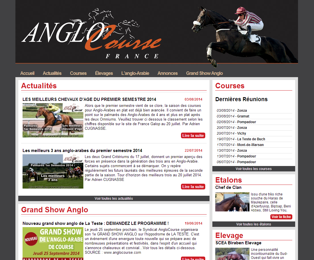 L'Anglo-Arabie possède une puissante et active branche "course" essentiellement située dans un vaste sud-ouest, entre le Cantal et Pau. Un site entièrement dédié à l'AngloCourse permet de découvrir sous tous ses aspects ce monde injustement méconnu.