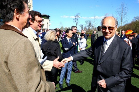 Du beau monde, au rond de présentation de l'épreuve majeure de la journée : le Prix d'Harcourt (Gr.2). Son altesse Karim Aga Khan croise Matthieu Vincent et Edouard de Rothschild.
