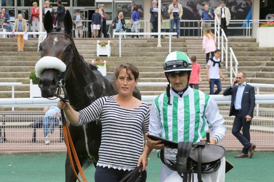 Tzar's Dancer & Wilfrid Denuault enlèvent le Prix Rigoletto Listed - Entraînement de Mrs E&G Lennders - ici aux côtés de Mme De Saint-Seine (éleveur et co-propriéatire)
