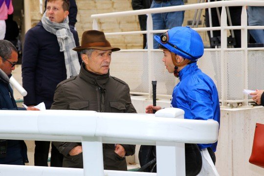 Jour de gloire pour l'entraineur Jean-Paul Busson, ici rejoint par Christian Bauer, grâce au succès d'Until Dream à Saint-Cloud