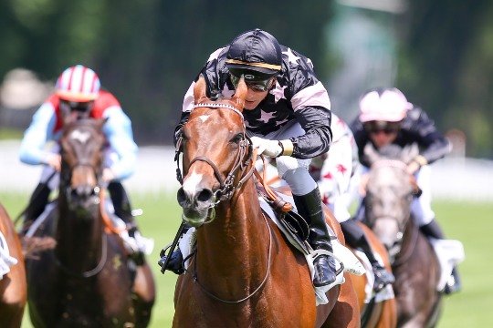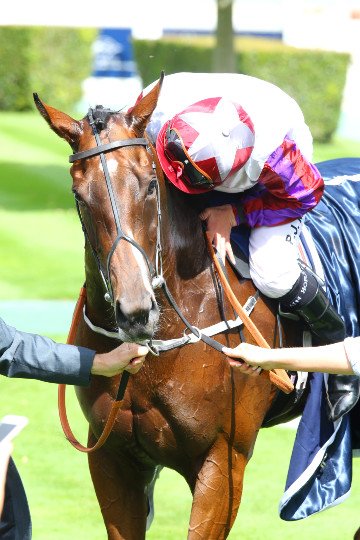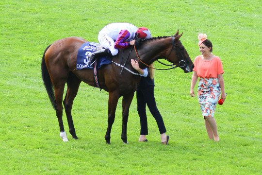PJ McDonard célèbre sa victoire. 3 ans après son compatriote John Gosden, les couleurs anglaises s'imposent cette année.