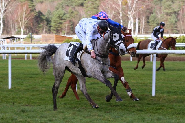 100% ! Guilain Bertrand (Gentleman-Rider parmi les meilleurs), est aussi permis d'entraîner et propriétaire. Ce vendredi, Grey Sensation lui offre la 1ère victoire de l'année pour son entraînement, devant les pros